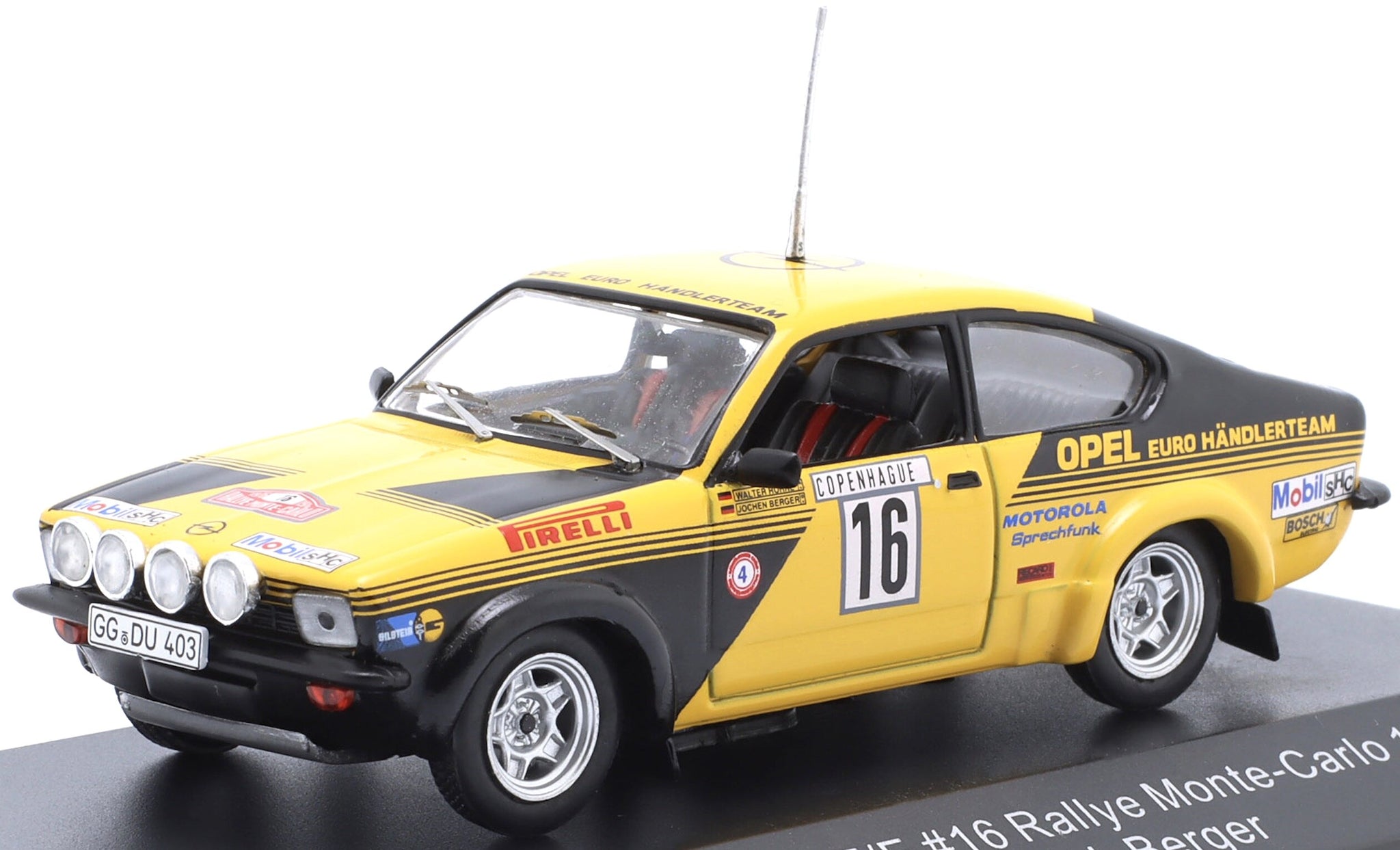 OPEL KADETT C GT/E (night version) N 16 4th RALLY MONTECARLO 1976 WALTER ROHRL - JOCHEN BERGER YELLOW BLACK 1:43
